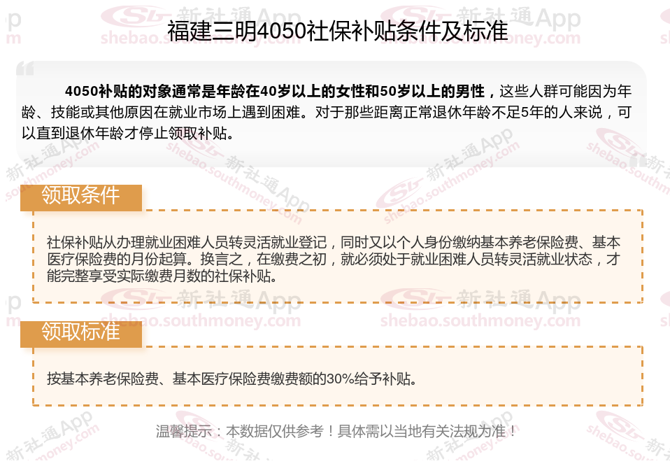 一、2025年福建三明4050社保补贴标准是怎么样的,附领取条件