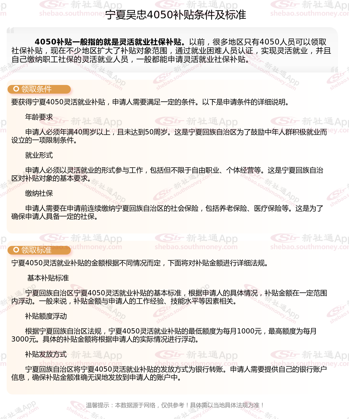 以上就是宁夏吴忠4050灵活就业社保补贴的相关内容,欢迎关注新社通/下载新社通APP了解更多五险一金专业资讯。