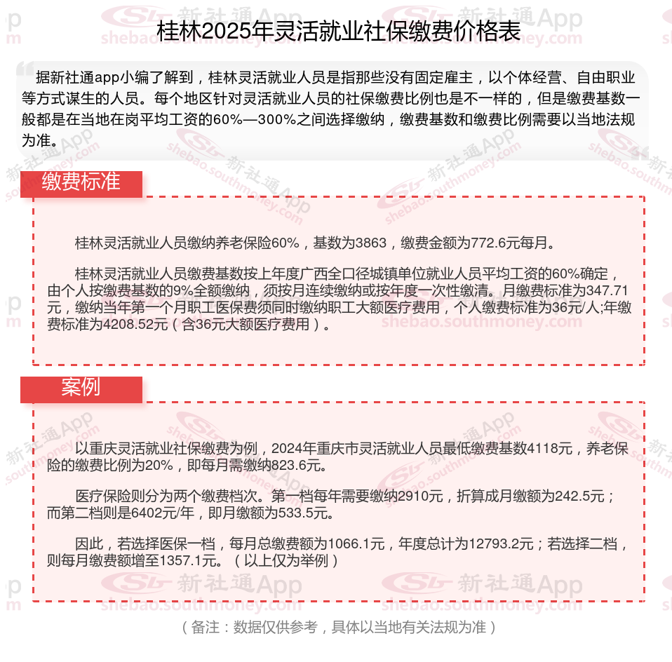 以上就是新社通小编带来桂林灵活就业社保缴费知识,内容供参考,希望对你有帮助,欢迎关注/下载新社通APP解锁更多社保专业资讯。