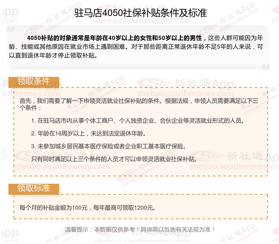 二、驻马店4050社保补贴标准及条件4050社保补贴,最新如下