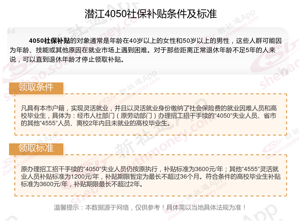 一、2025年潜江4050社保补贴标准是怎么样的,附领取条件