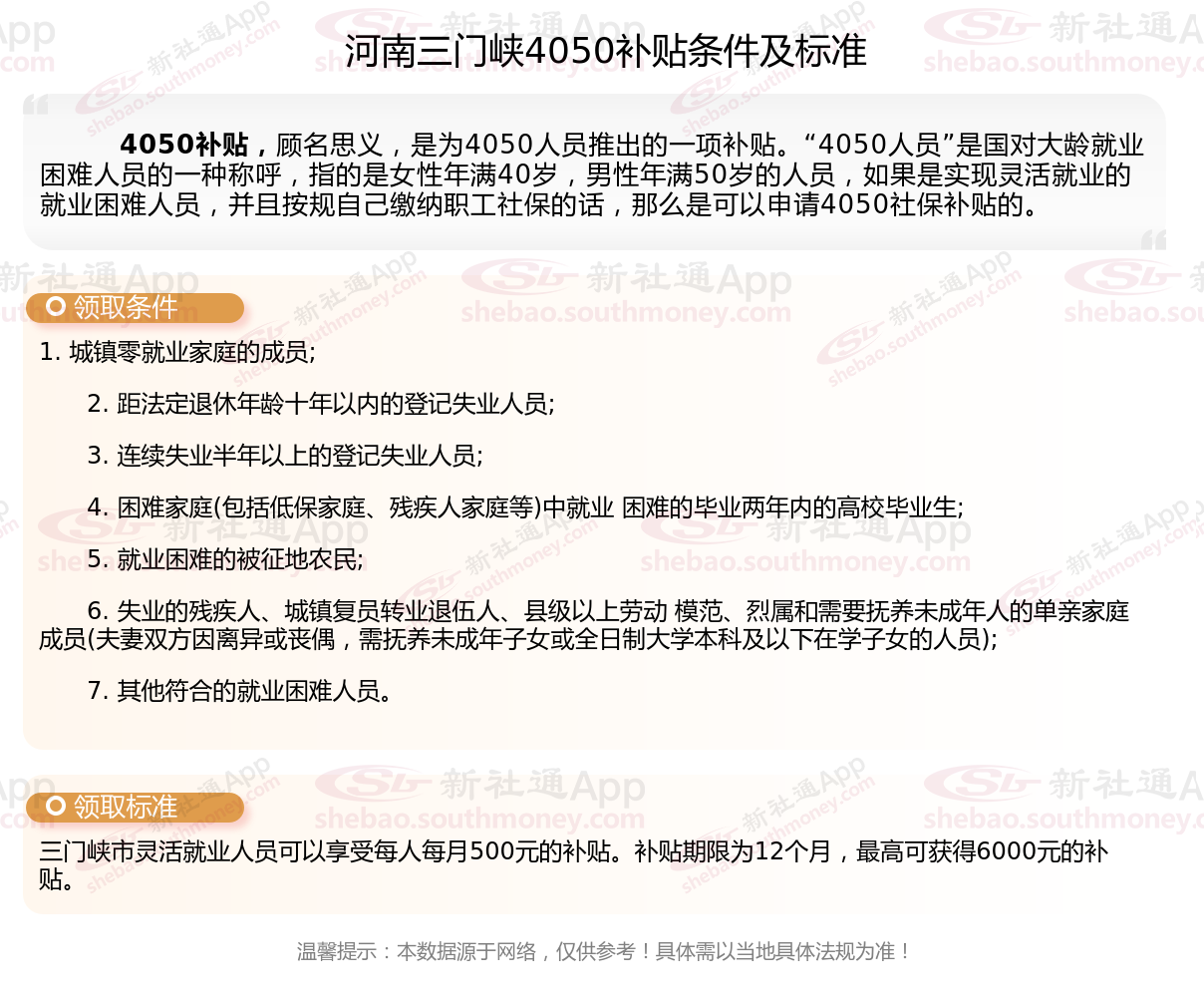 以上就是河南三门峡4050灵活就业社保补贴的相关内容,欢迎关注新社通/下载新社通APP了解更多五险一金专业资讯。