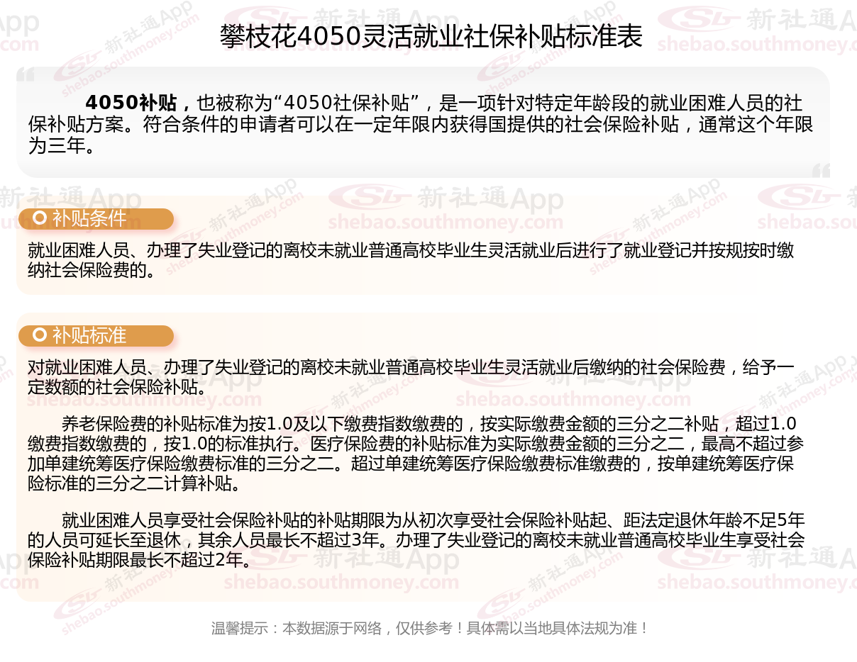 一、2025年攀枝花4050社保补贴标准,最新领取条件来了