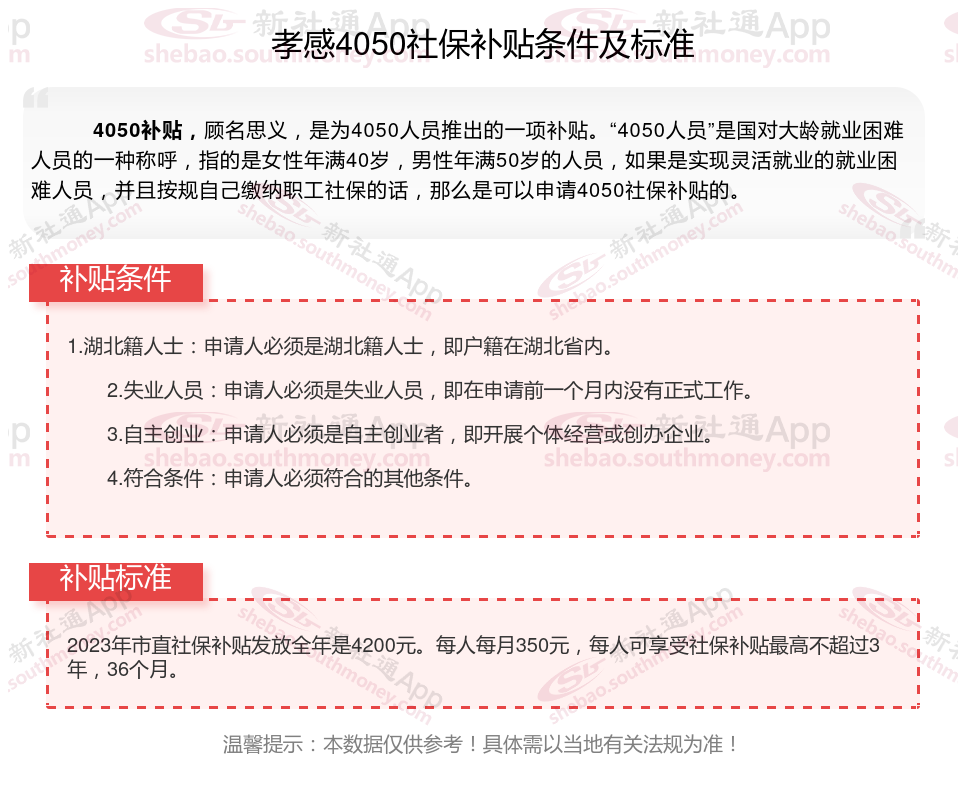 二、2025年孝感4050社保补贴标准(孝感4050灵活就业人员补贴标准是多少钱?孝感2025年4050补贴新规能领多少钱?)