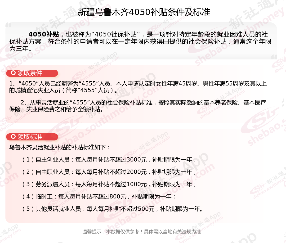 以上就是新疆乌鲁木齐4050灵活就业社保补贴的相关内容,欢迎关注新社通/下载新社通APP了解更多五险一金专业资讯。