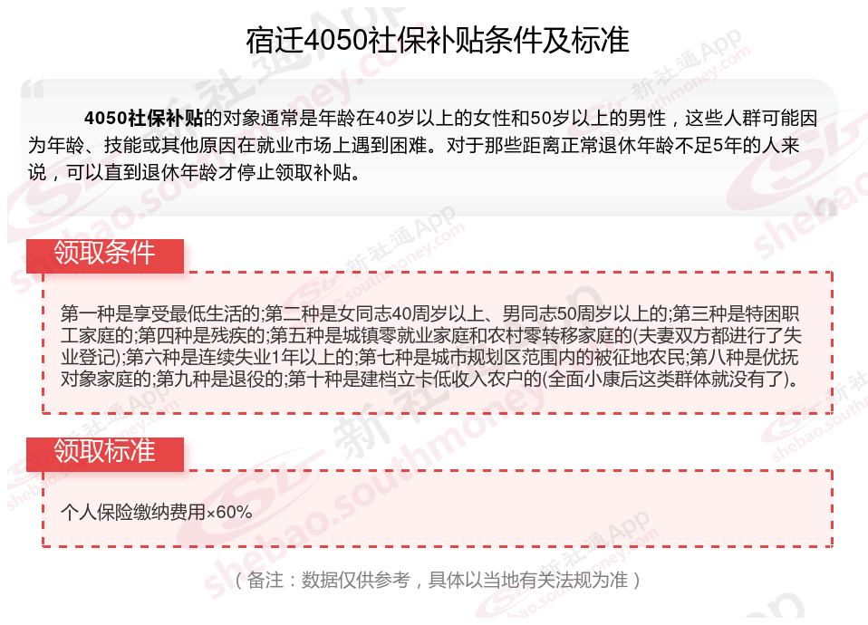 一、2025年宿迁灵活就业4050社保补贴标准及条件是什么