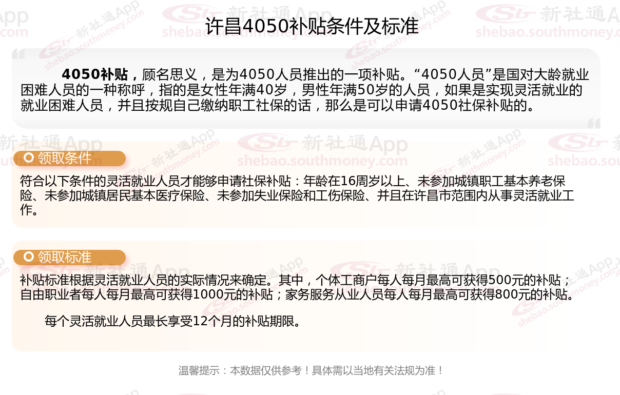 以上就是许昌4050灵活就业社保补贴的相关内容,欢迎关注新社通/下载新社通APP了解更多五险一金专业资讯。