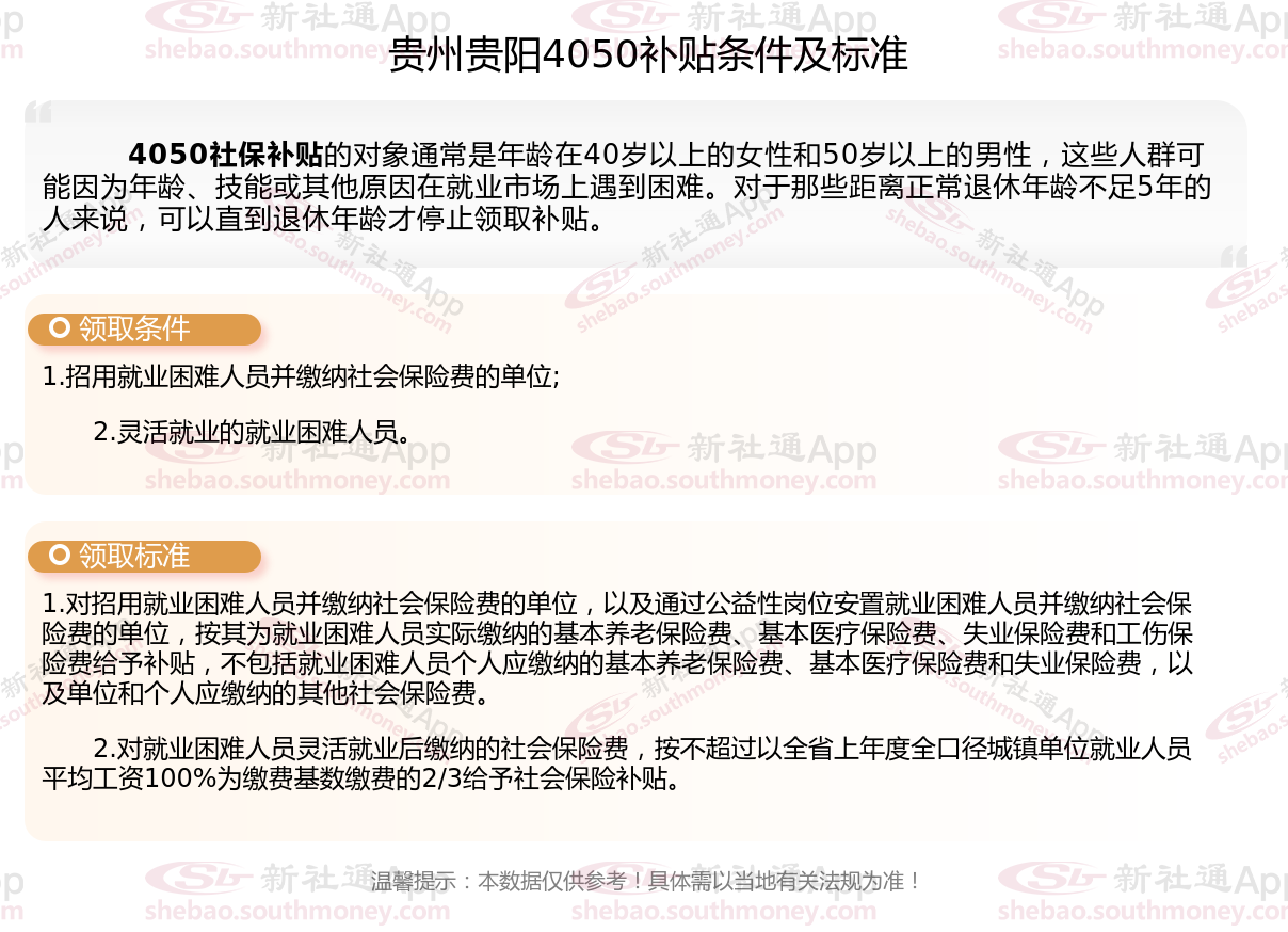 二、2025年贵州贵阳4050社保补贴标准是多少?领取条件是什么?