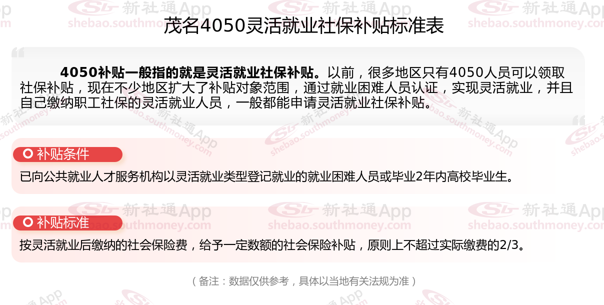 一、2023-2024年茂名4050灵活就业社保补贴标准及条件