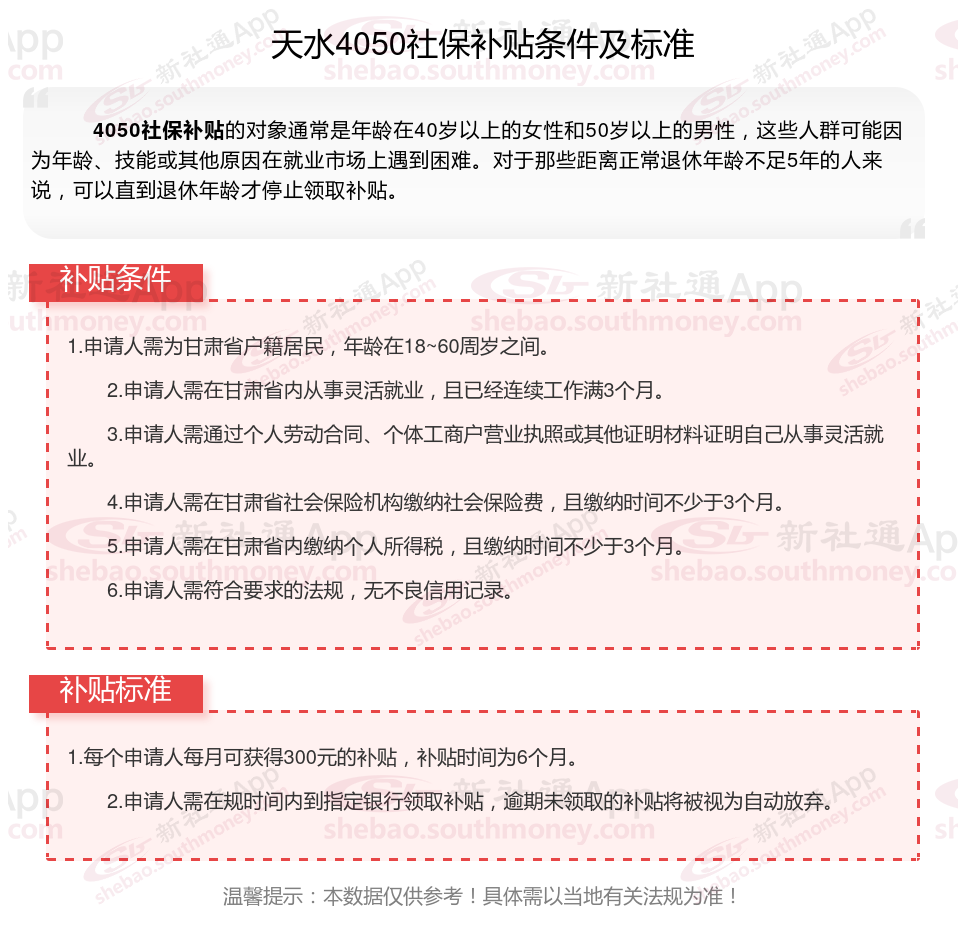 2025天水4050补贴主要针对的是年龄在40岁以上的女性和50岁以上的男性,这些人群通常因为年龄较大而面临就业困难。