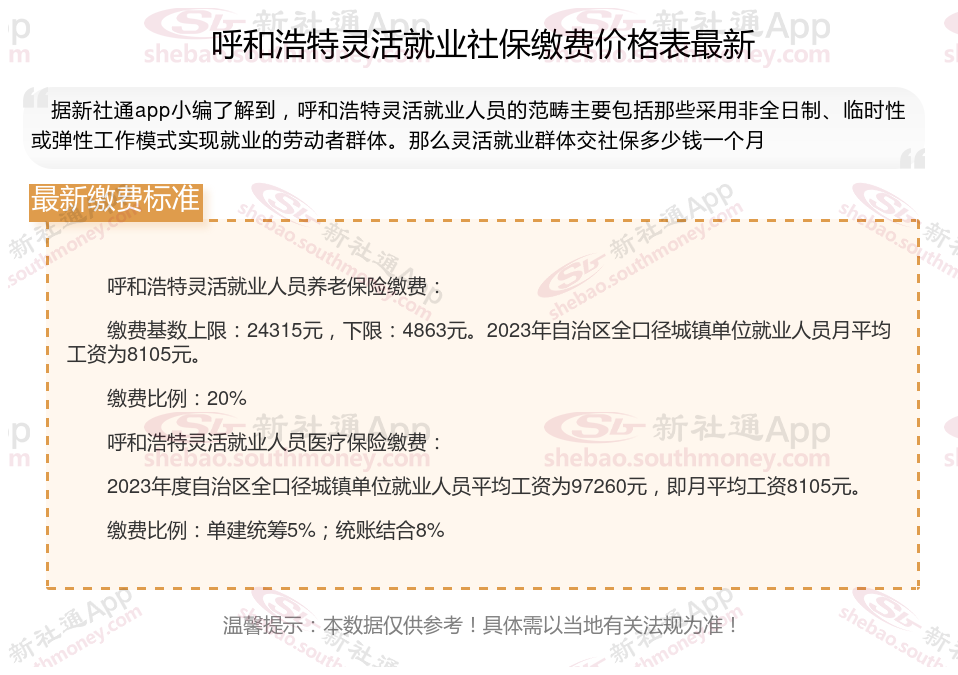 呼和浩特灵活就业自己交社保一个月要交多少钱?根据新社通app-社保缴费查询工具提供的最新数据如下: