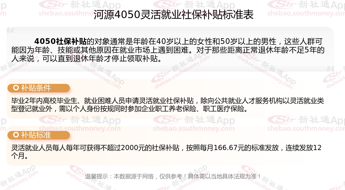 以上就是河源4050灵活就业社保补贴的相关内容,欢迎关注新社通/下载新社通APP了解更多五险一金专业资讯。