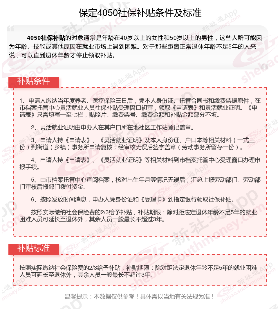 2025保定灵活就业4050社保补贴是一项面向特定年龄段的就业困难人群的社会保险补贴。