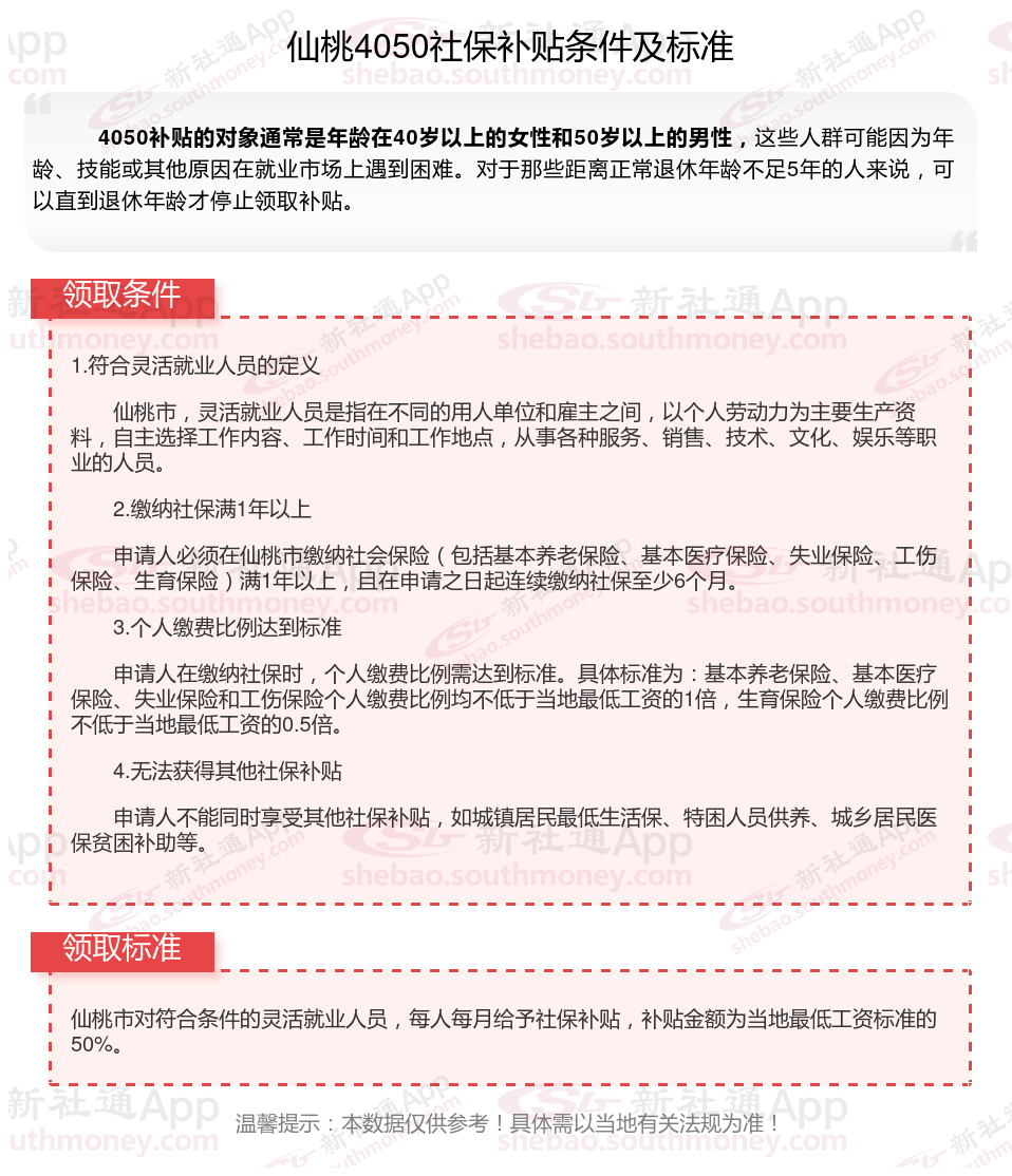 二、2025年仙桃4050社保补贴标准及条件是什么?