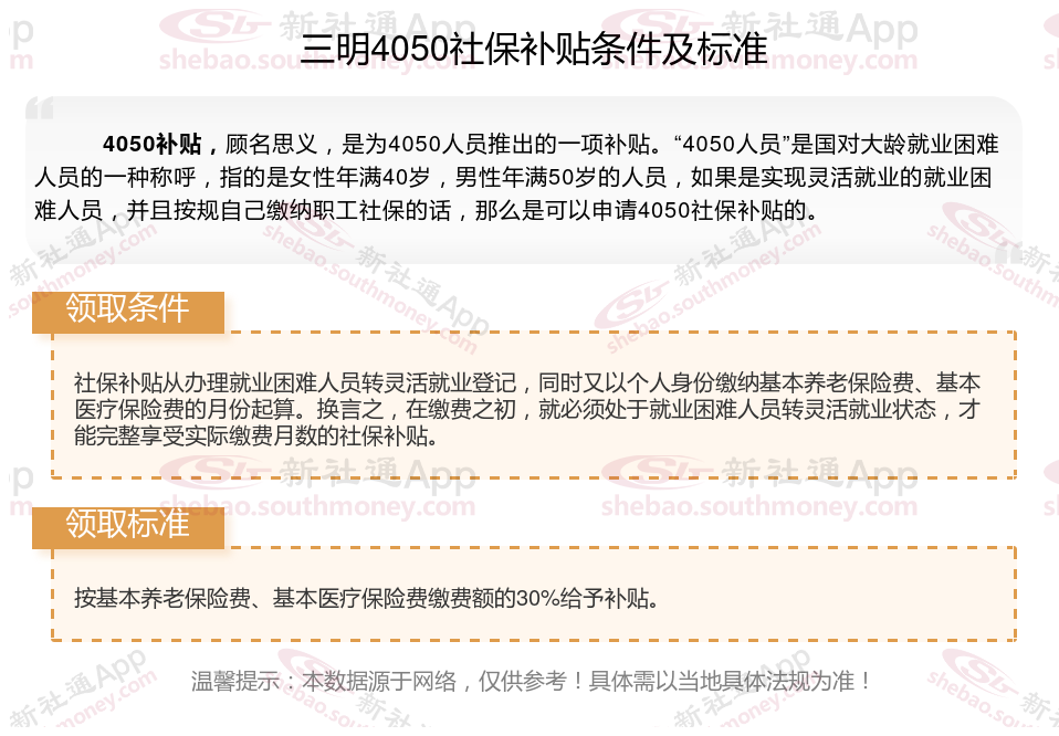 2025三明灵活就业4050社保补贴是一项面向特定年龄段的就业困难人群的社会保险补贴。
