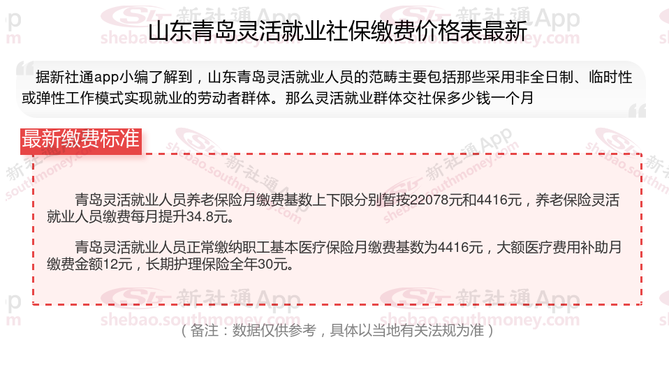 山东青岛灵活就业人员基本养老保险缴费基数暂按不低于4416元;