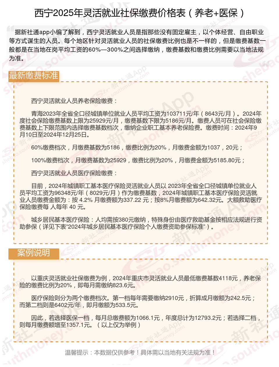 一、西宁灵活就业人员社保缴费基数2024-2025年最新标准是多少?灵活就业社保缴费待遇是怎样的?