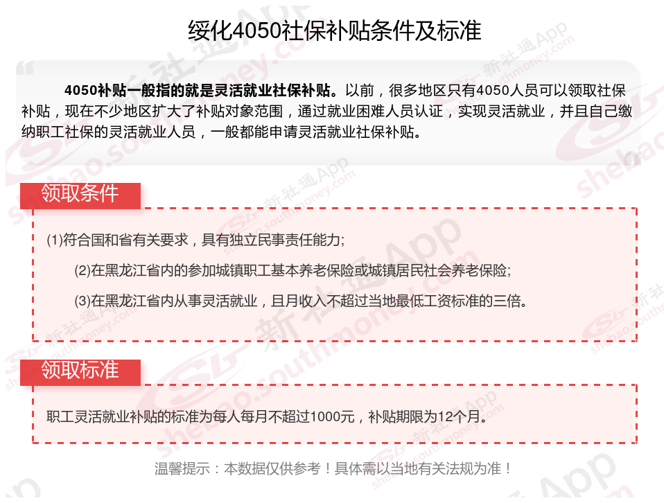 一、绥化灵活就业人员4050补贴最新标准2025年,绥化4050灵活就业人员养老补贴一年可以有多少钱?