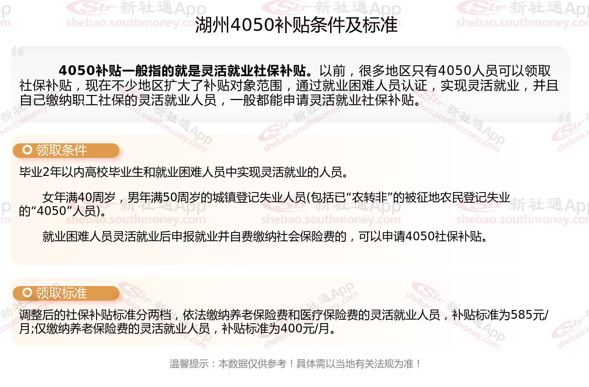 以上就是湖州4050灵活就业社保补贴的相关内容,欢迎关注新社通/下载新社通APP了解更多五险一金专业资讯。