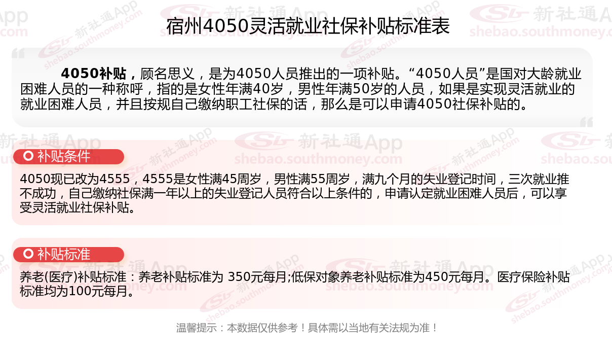 一、宿州4050社保补贴标准及条件2025年最新消息