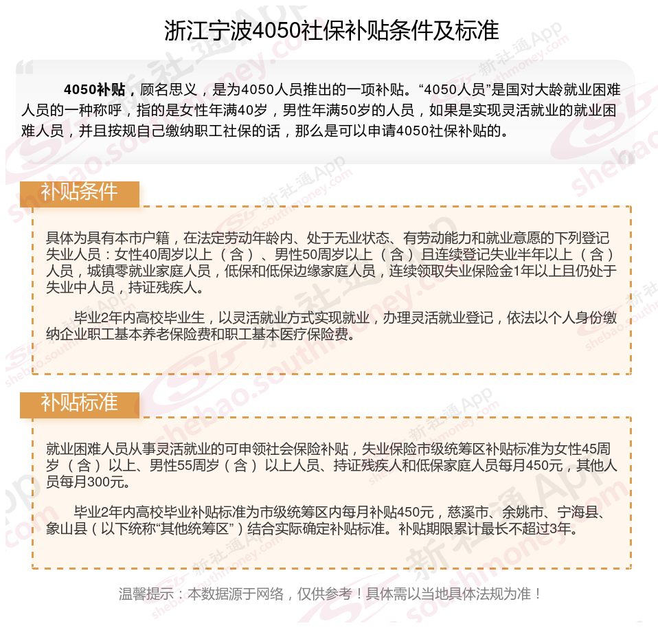2025浙江宁波4050补贴主要针对的是年龄在40岁以上的女性和50岁以上的男性,这些人群通常因为年龄较大而面临就业困难。