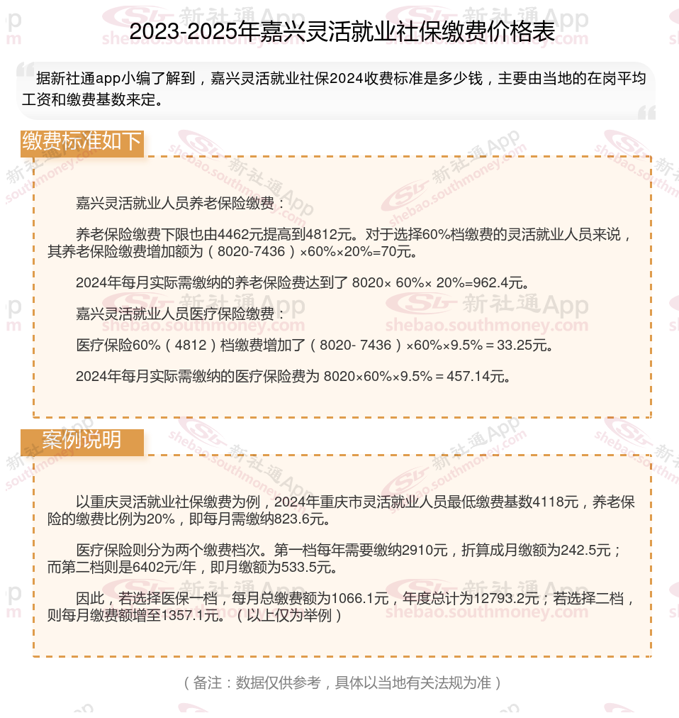 二、嘉兴2025年灵活就业社保缴费基数及比例最新消息