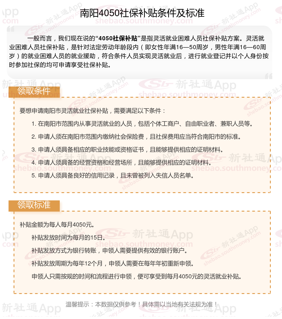 1、南阳4050社保补贴申请条件