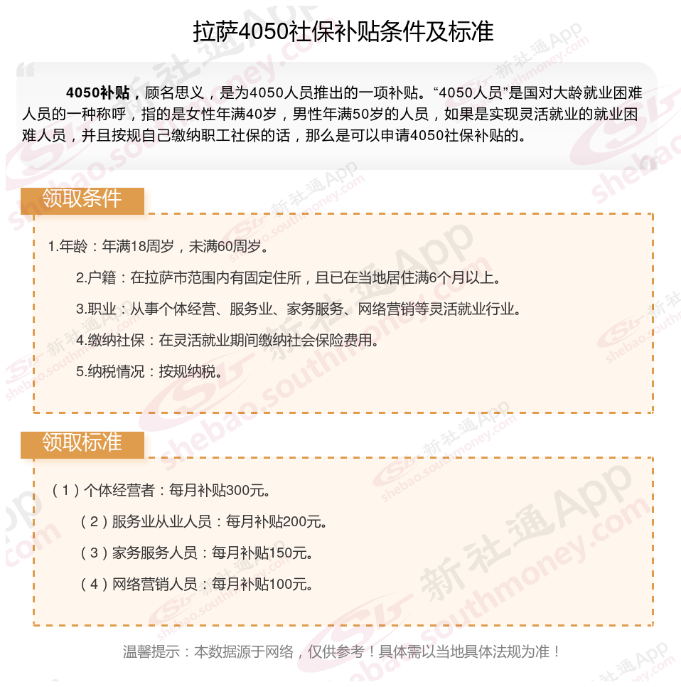 2025拉萨4050补贴主要针对的是年龄在40岁以上的女性和50岁以上的男性,这些人群通常因为年龄较大而面临就业困难。