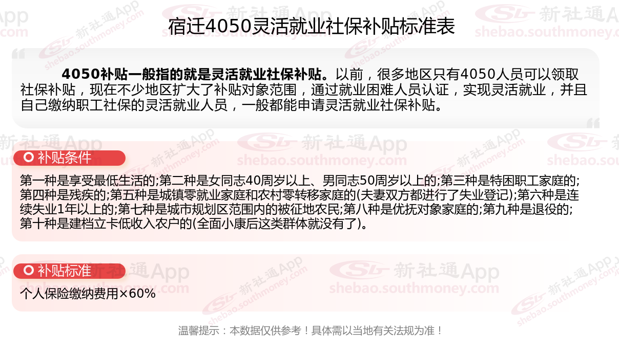 以上就是宿迁4050灵活就业社保补贴的相关内容,欢迎关注新社通/下载新社通APP了解更多五险一金专业资讯。