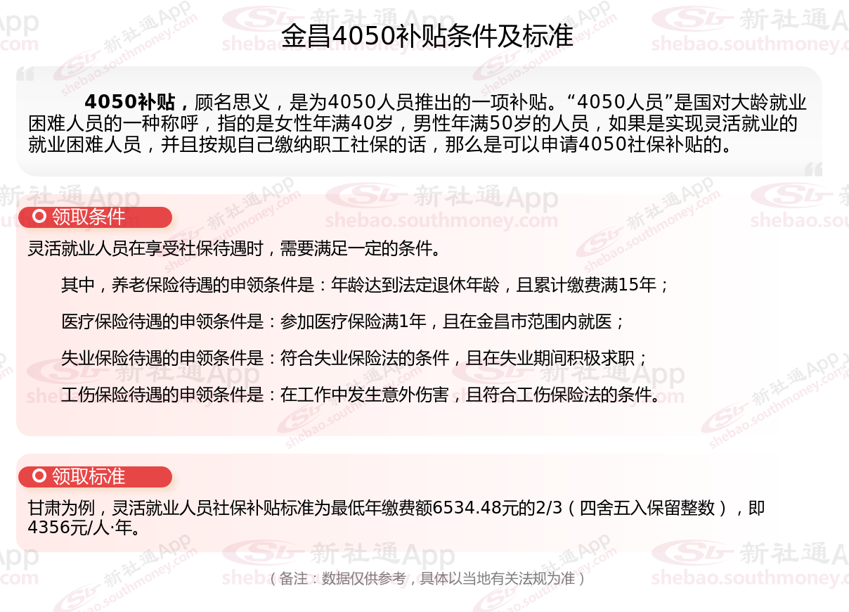 2025金昌灵活就业4050社保补贴是一项面向特定年龄段的就业困难人群的社会保险补贴。
