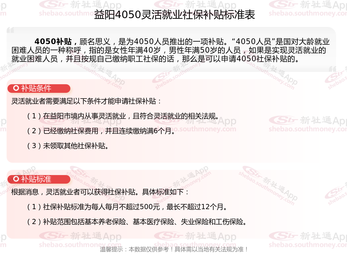 二、益阳4050社保补贴标准及条件4050社保补贴,最新如下