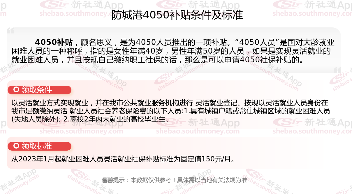 二、2025年防城港4050社保补贴多少钱?4050社保补贴领取条件什么?