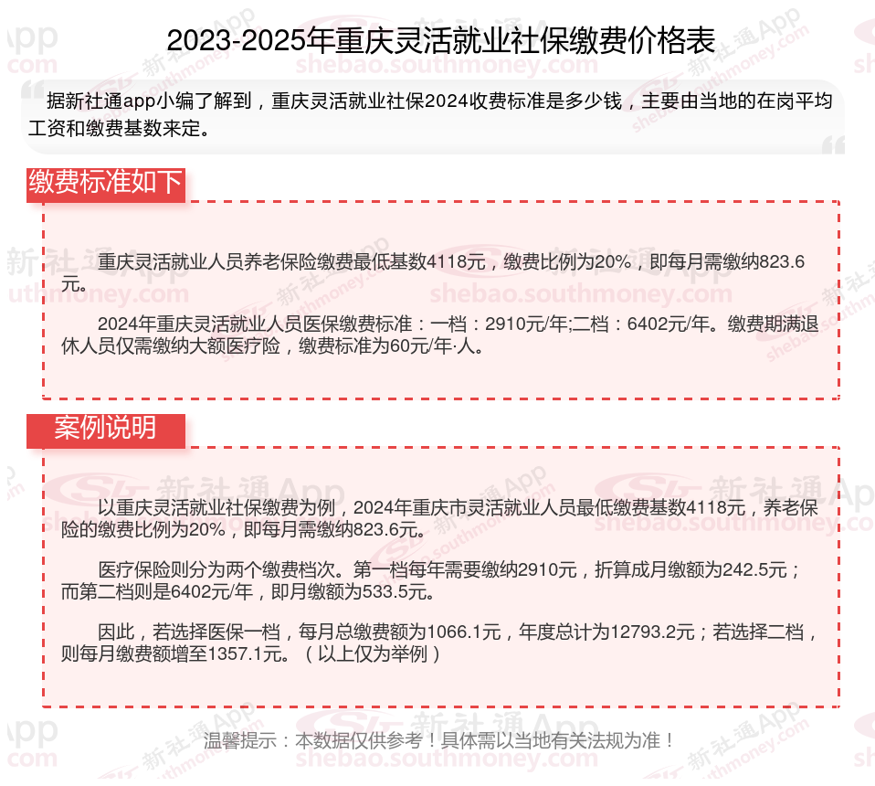 重庆灵活就业社保缴费标准来了 灵活就业社保最低要交多少钱?根据新社通app-社保缴费查询工具提供的最新数据如下: