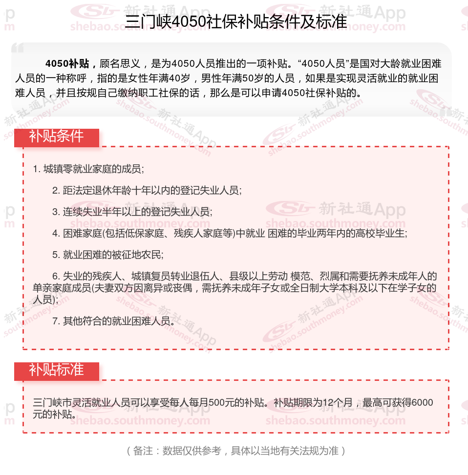 二、三门峡4050社保补贴标准及条件4050社保补贴,最新如下