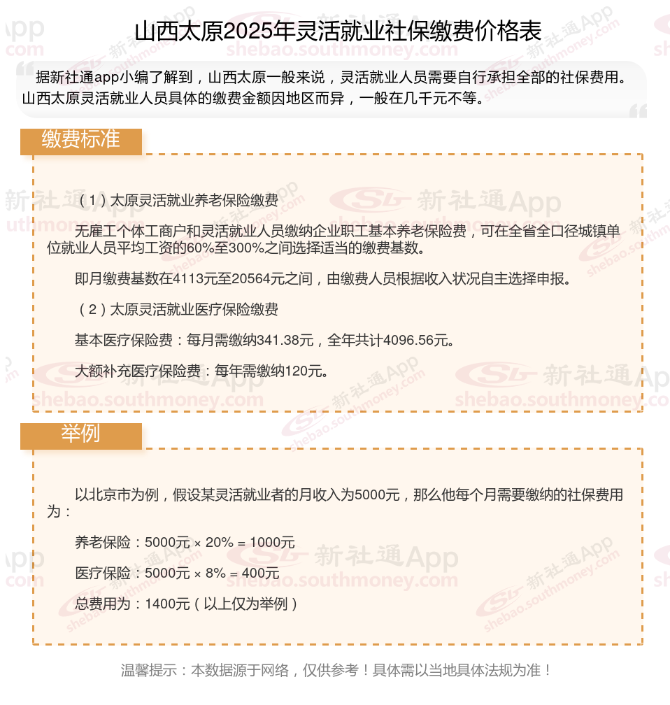 山西太原灵活就业人员基本养老保险缴费基数暂按不低于4113元;