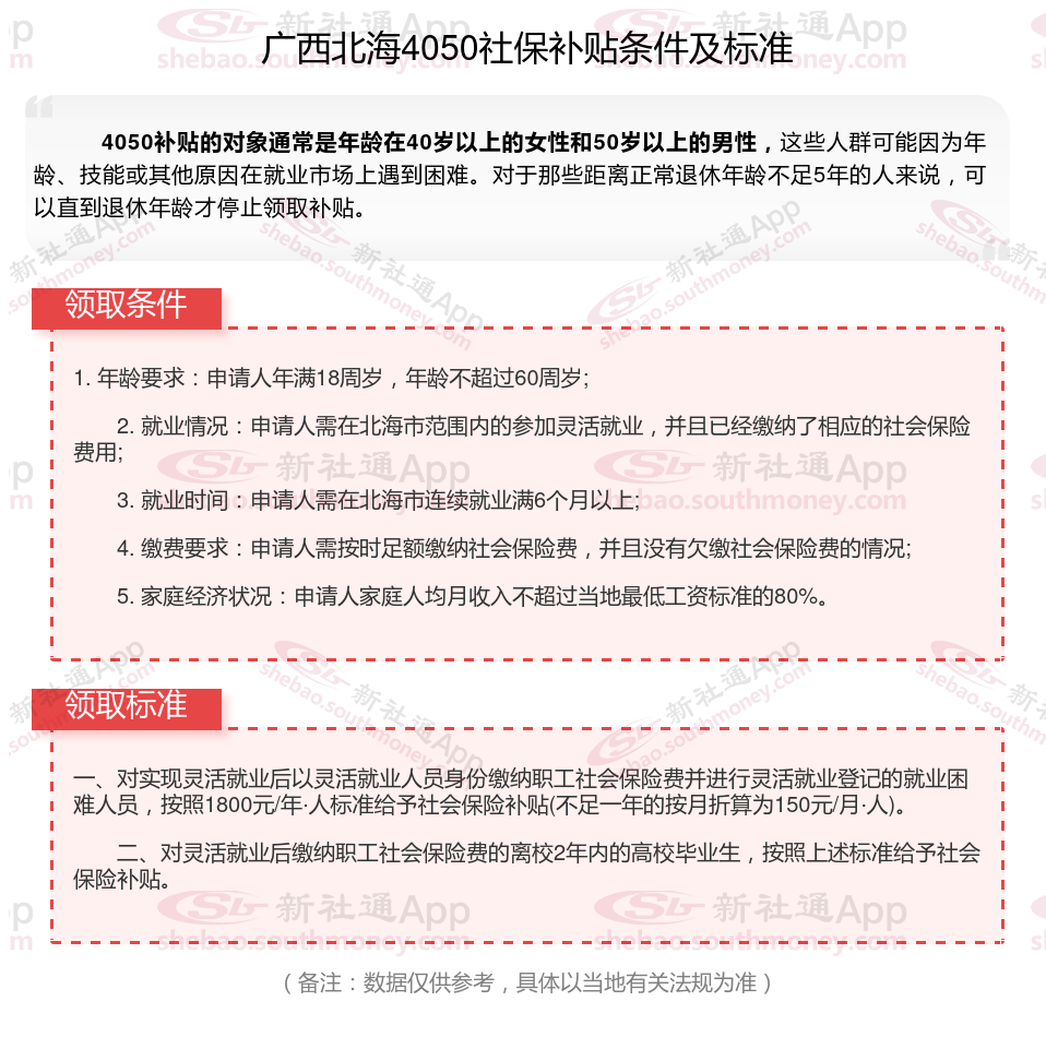 一、2023-2024年广西北海4050社保补贴标准及条件,最新如下