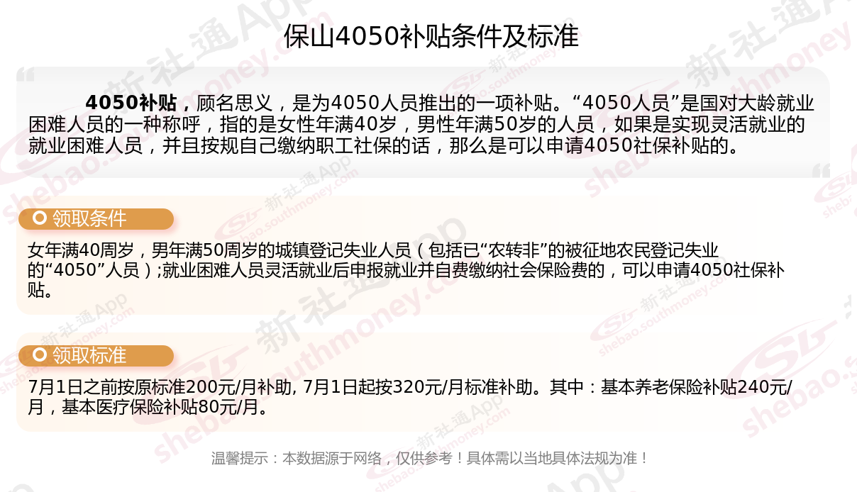 二、2025年保山4050社保补贴标准及条件,最新如下: