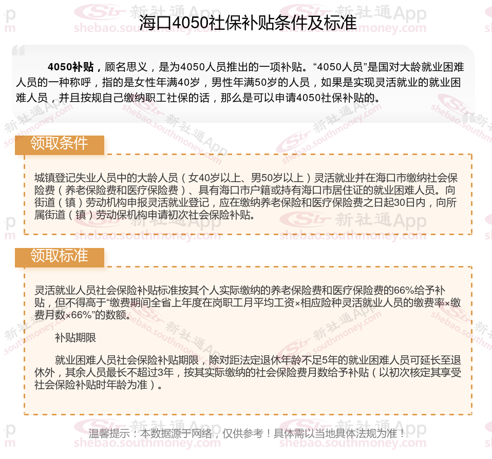 以上就是海口4050灵活就业社保补贴的相关内容,欢迎关注新社通/下载新社通APP了解更多五险一金专业资讯。
