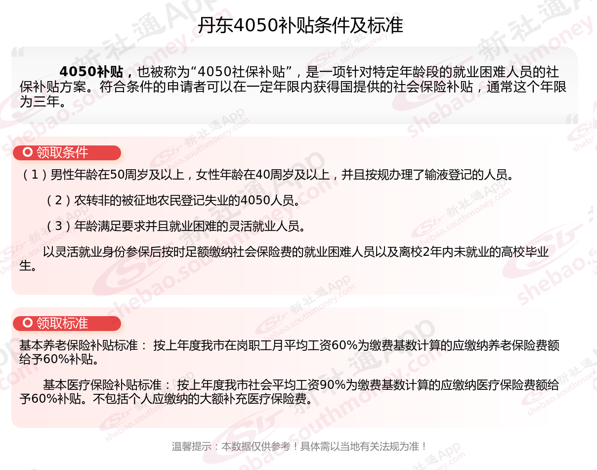 二、丹东4050社保补贴标准及条件2025年最新消息