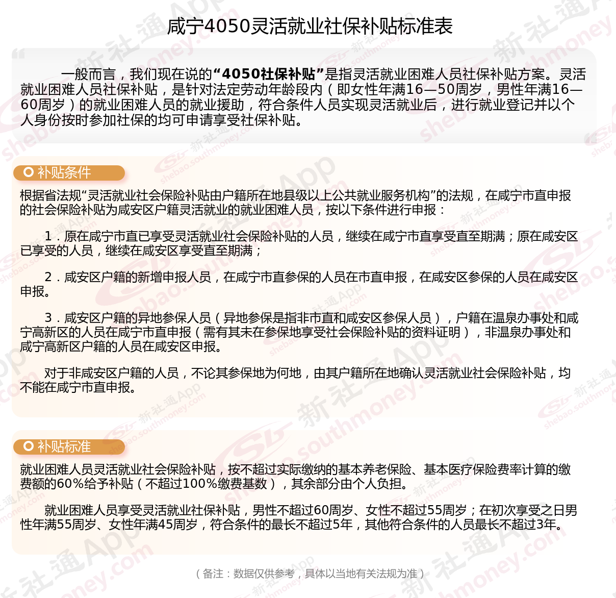 以上就是咸宁4050灵活就业社保补贴的相关内容,欢迎关注新社通/下载新社通APP了解更多五险一金专业资讯。