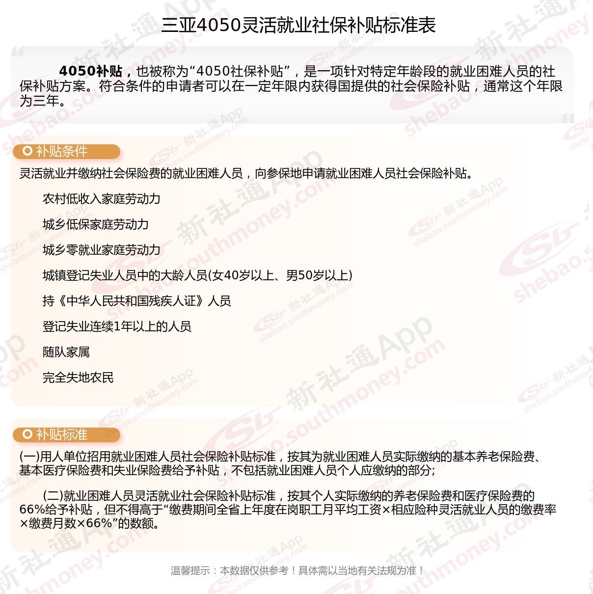 二、三亚4050社保补贴标准及条件2025年,最新如下