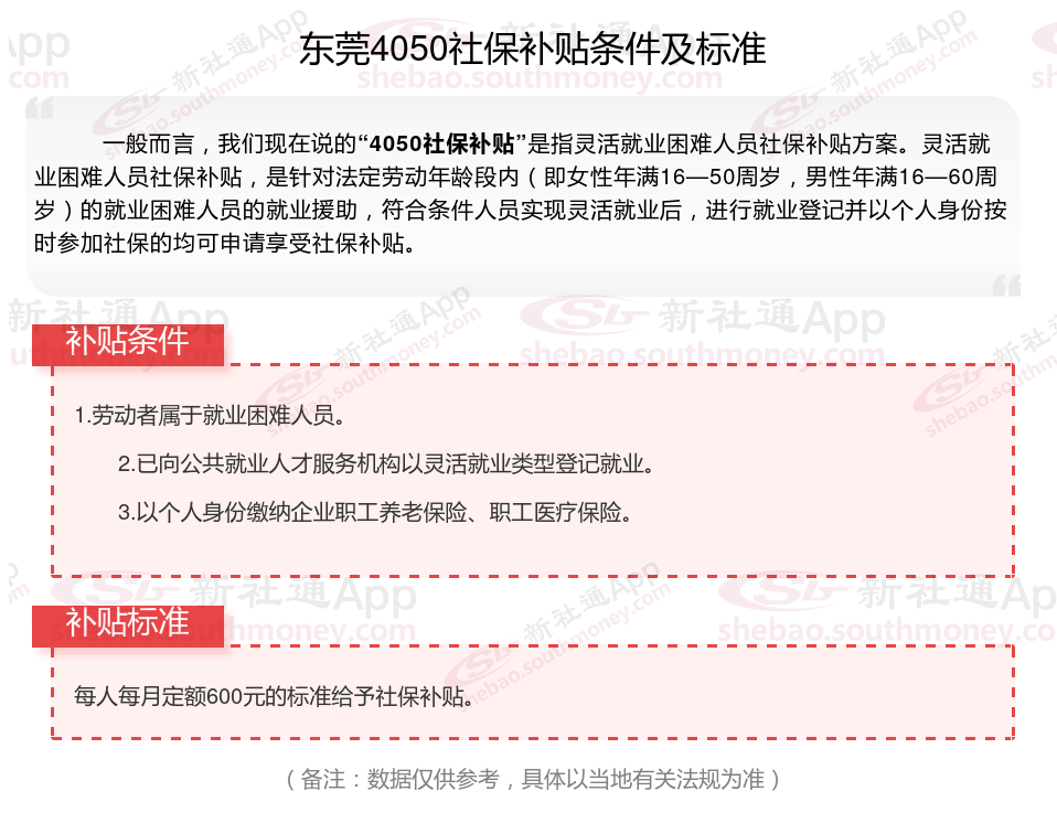 二、2025年东莞4050社保补贴标准,最新领取条件来了