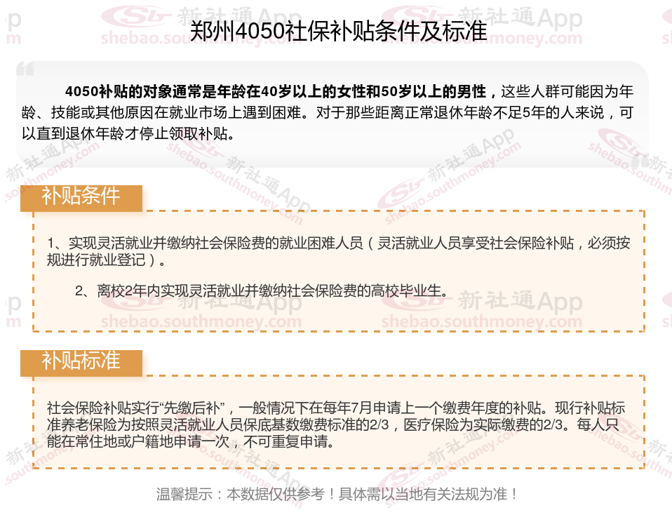 二、郑州4050社保补贴标准及条件2025年最新消息