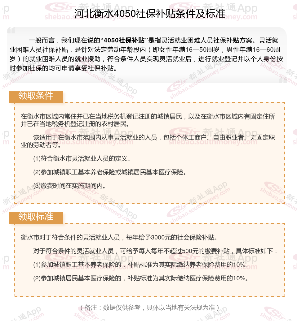 二、河北衡水4050社保补贴多少钱一个月?河北衡水4050社保补贴2025年最新标准是多少?