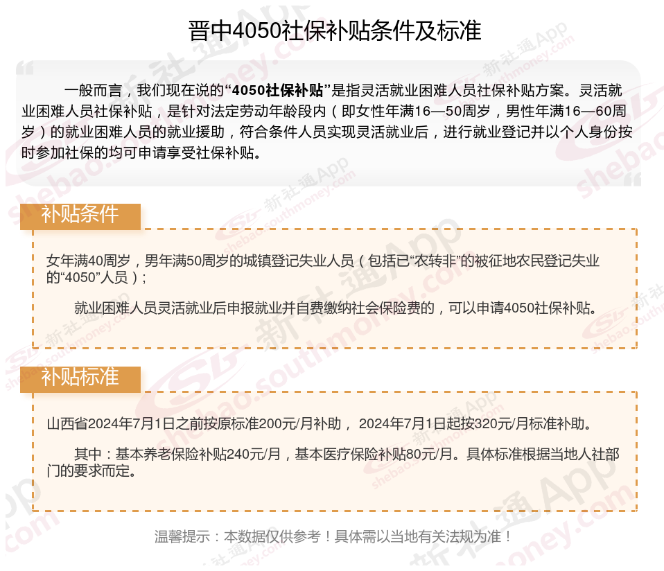 一、2025年晋中4050社保补贴标准,最新领取条件来了
