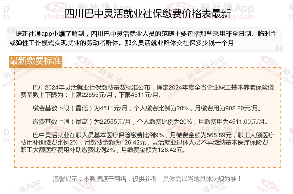 以上就是新社通小编带来四川巴中灵活就业社保缴费知识,内容供参考,希望对你有帮助,欢迎关注/下载新社通APP解锁更多社保专业资讯。