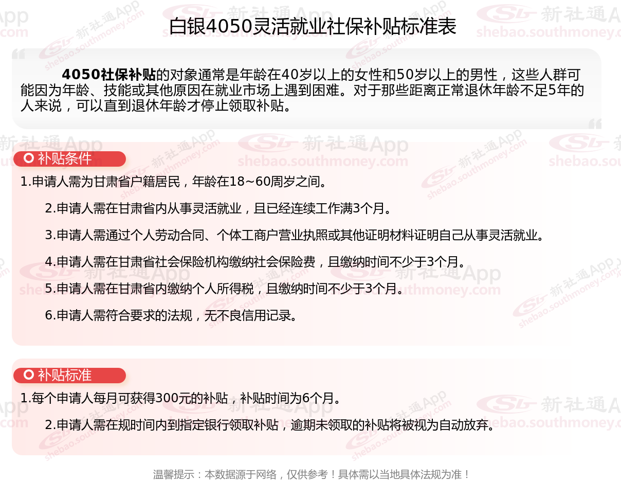 一、2023-2024年白银4050灵活就业社保补贴标准及条件