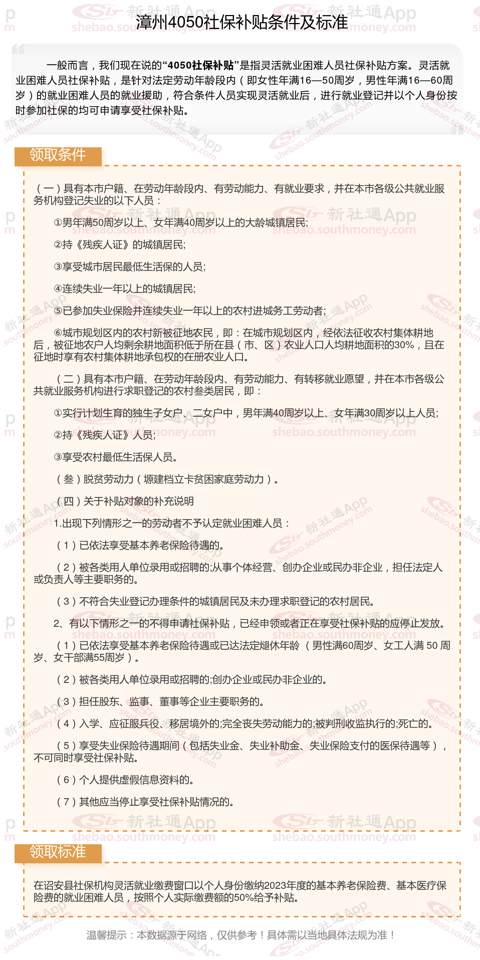 一、2025年漳州4050社保补贴标准及条件是多少?