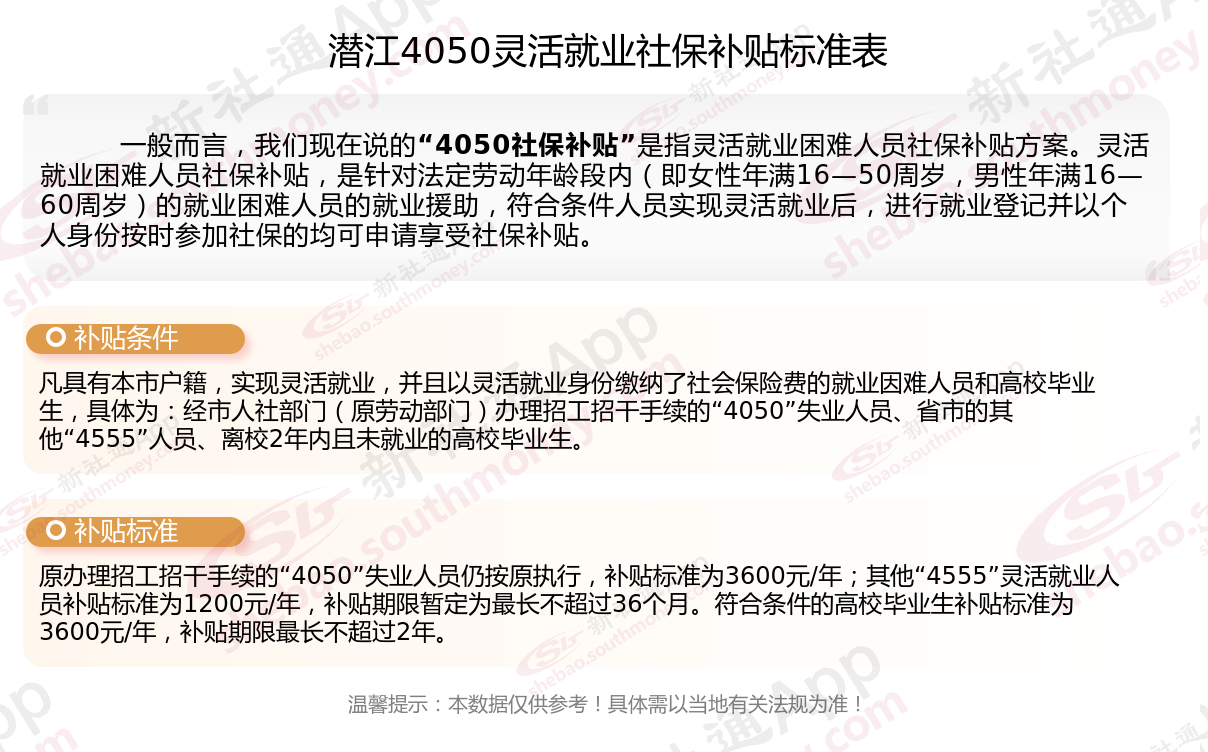 二、潜江4050社保补贴标准及条件2025年最新消息