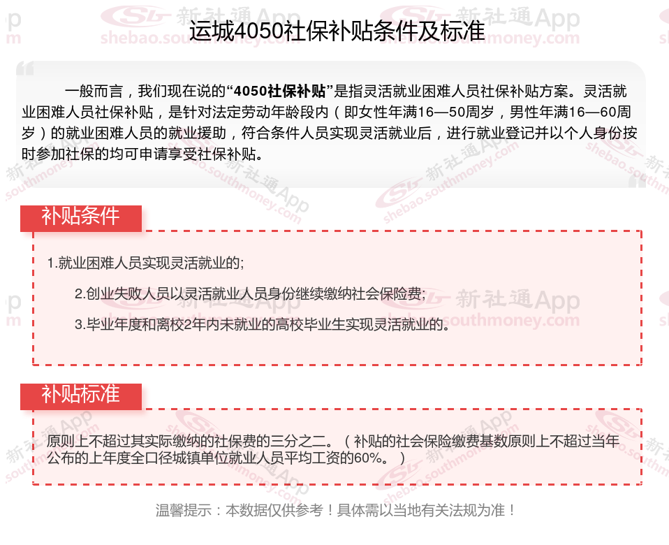 二、运城4050社保补贴标准及条件4050社保补贴,最新如下